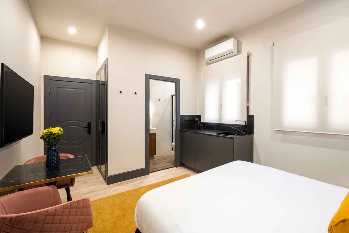 Todos los apartamentos cuentan con aire acondicionado y calefacción con control individual, para que puedas ajustar la temperatura exactamente a tu gusto en cualquier época del año. Tanto si vienes en verano como en invierno, tendrás un confort constante dentro del apartamento, con la tranquilidad de regularlo tú mismo según tus horarios y preferencias.